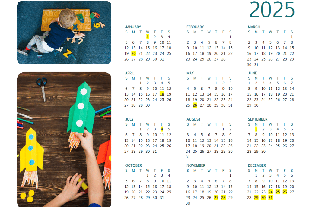 *Highlighted are the dates we are closed for holidays. This calendar is non-exhaustive and is subject to change.