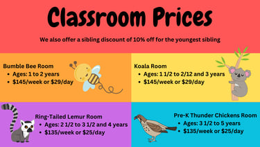 We have about 11 teachers on staff--several have worked here for 10+ years. We truly love what we do and are eager to teach and lead children each day. We do our best to provide a safe, inviting, and fun learning environment for our children.
