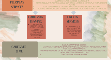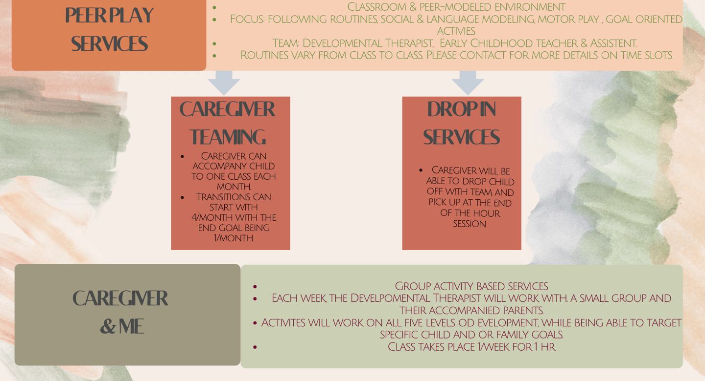 Drop-In Services :: In a classroom setting, the Developmental Therapist works with the child on goals set by the parents up to 2.5 hours a week. Peers model different types of social and play skills while interacting with the child. The caregiver can attend one class a month with the child.